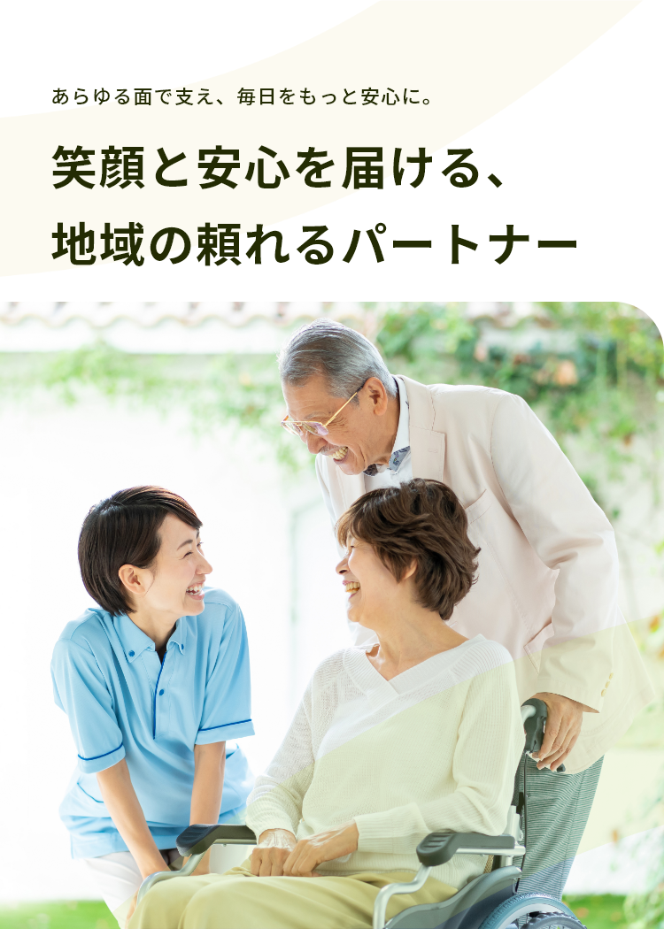 医療・介護の専門スタッフが、個々のニーズに合わせた心温まるサービスを提供し信頼される存在を目指して日々活動しています。